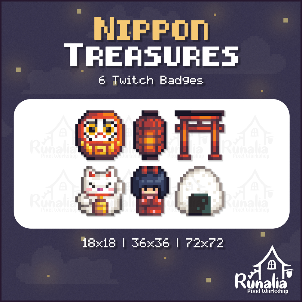 🌟 Nippon Treasures | 6 Pixel Art Twitch Bit / Sub Badges / Emote