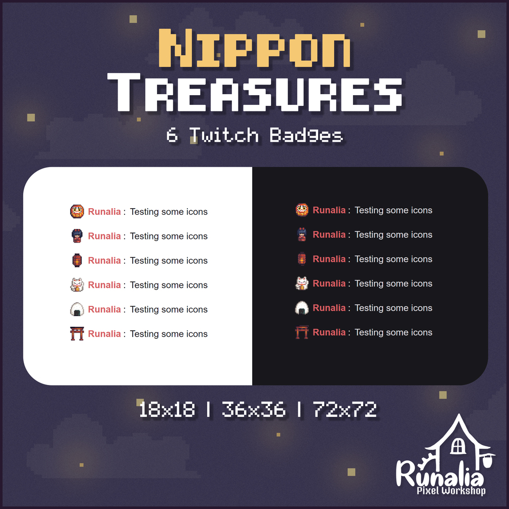 🌟 Nippon Treasures | 6 Pixel Art Twitch Bit / Sub Badges / Emote